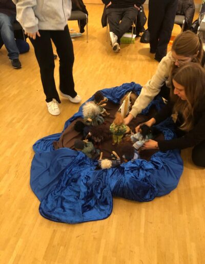 Mit den biblischen Erzählfiguren durften die Teilnehmenden selbst aktiv werden: Die beweglichen Puppen luden dazu ein, Gefühle und Haltungen auszudrücken und so einen persönlichen Zugang zu den Geschichten zu finden. In Kleingruppen wurden anschließend das Gleichnis vom verlorenen Sohn und die Sturmstillung nach Markus 4 szenisch umgesetzt.